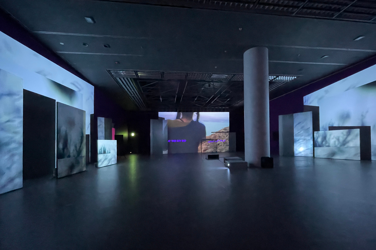 ジョン・アコムフラの3チャンネル映像インスタレーション《眩暈の海》は、BBCの自然史班と一緒に撮影した映像で、人間と海の関係を考察する作品です。J・M・W・ターナーの海景画、テオドール・ジェリコーの《メデュース号の筏》、カスパー・ダーヴィト・フリードリッヒの風景画を参照し、捕鯨やホッキョクグマ猟、奴隷船や海難事故、核実験場といったシーンが展開します。場面には詩や小説などのテキストが挿入され、映像世界に引き込まれました。