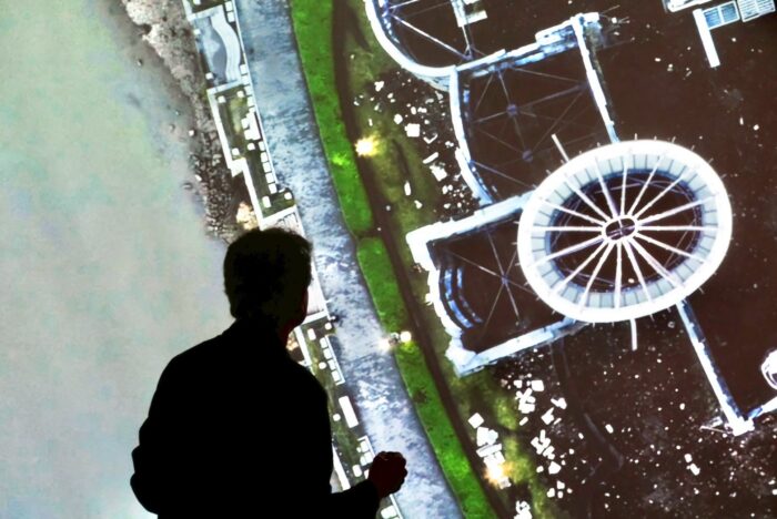 最後の部屋(展示室E)で轟音を鳴らすのは、2018年にヒロシマ賞を受賞し、その記念に制作された《ヒロシマ、ヒロシマ》(2023)。広島原爆ドームを上空からドローン撮影した作品だ。彼は原爆投下とその後の日米関係への問いを繰り返し投げかけている。